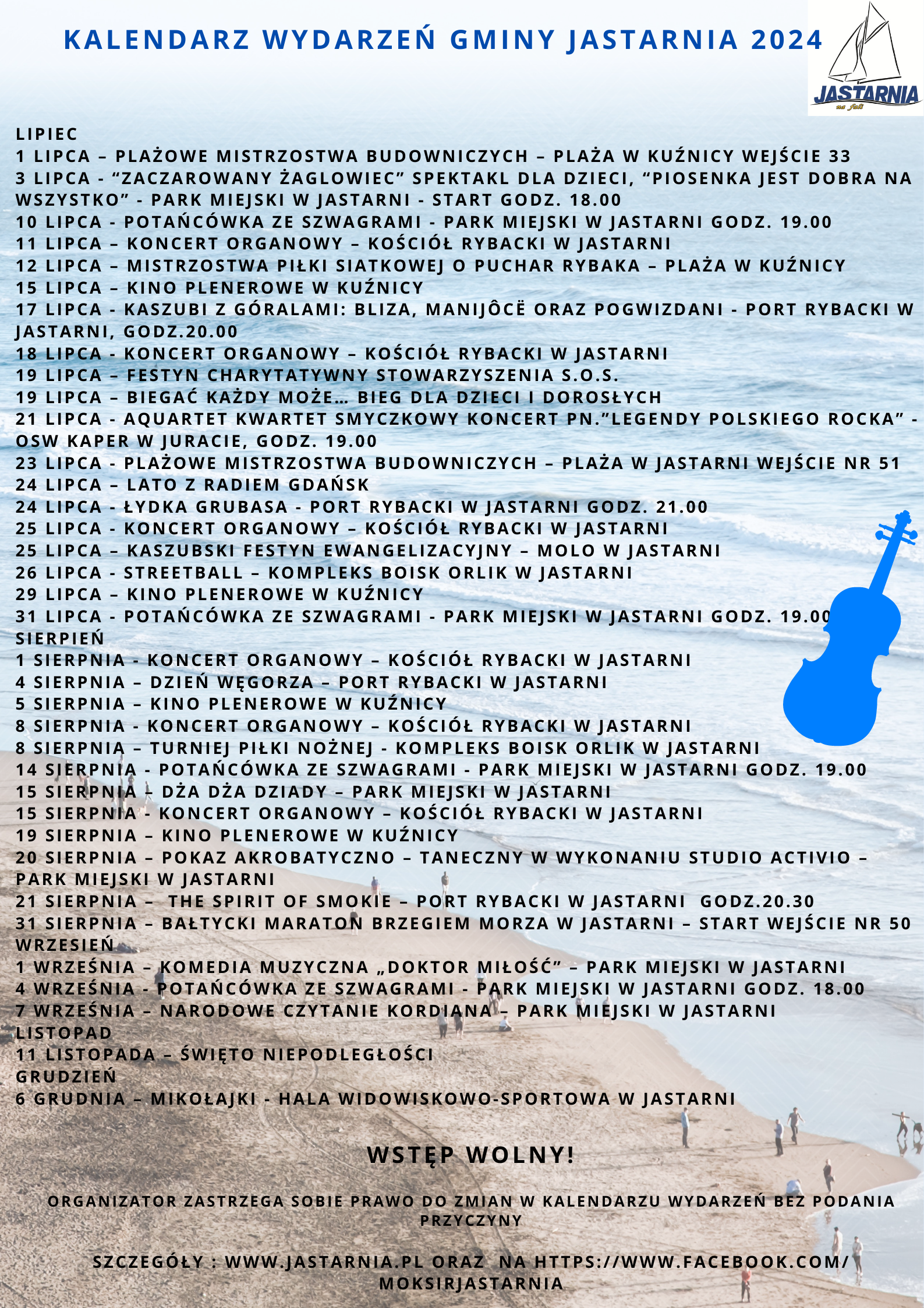 ORGANIZATOR ZASTRZEGA SOBIE ZMIANY W KALENDARZU WYDARZEŃ GMINY JASTARNIA BEZ PODANIA PRZYCZYNY