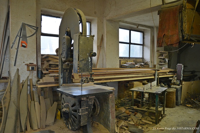 Piła taśmowa z roku 1893 która po dzień dzisiejszy jest używana w warsztacie szkutniczym.