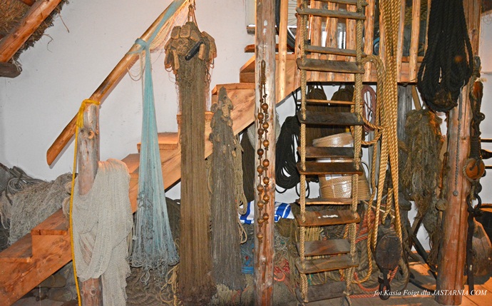 w niej eksponaty związane z połowem ryb, dawne przedmioty