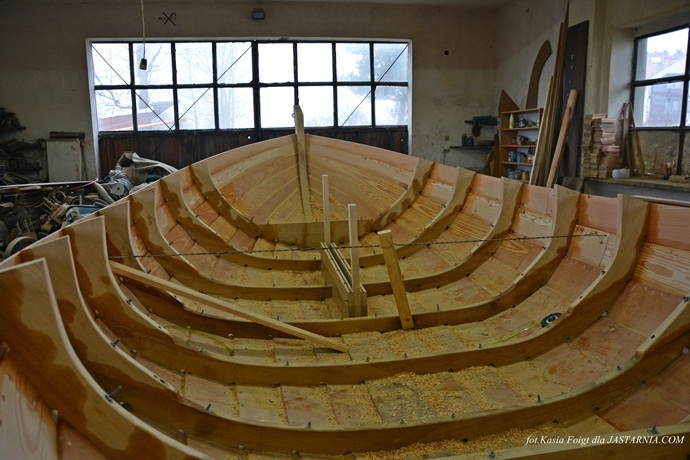 drzewa dębowego i modrzewiowego. Łódź na zdjęciu będzie
